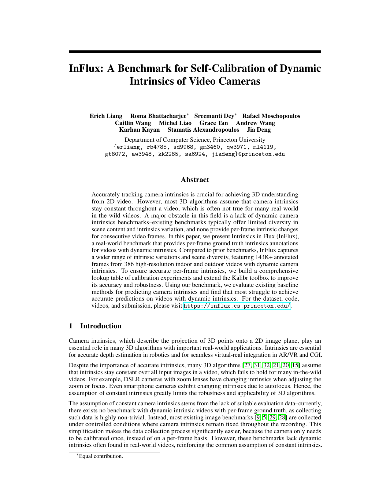 title={InFlux: A Benchmark for Self-Calibration of Dynamic Intrinsics of Video Cameras},